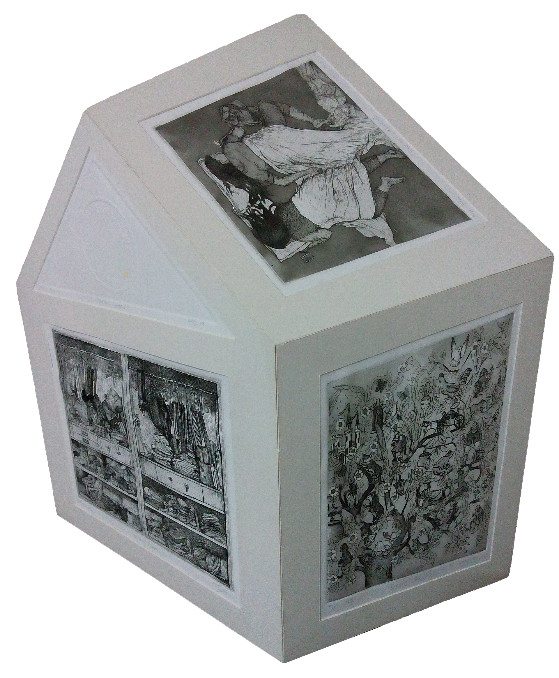 Home II is a series of etchings on zinc plate, including aquatints ane embossing techniques. It is inspired by my family and documents different aspects of our lives together. And the feeling of home.